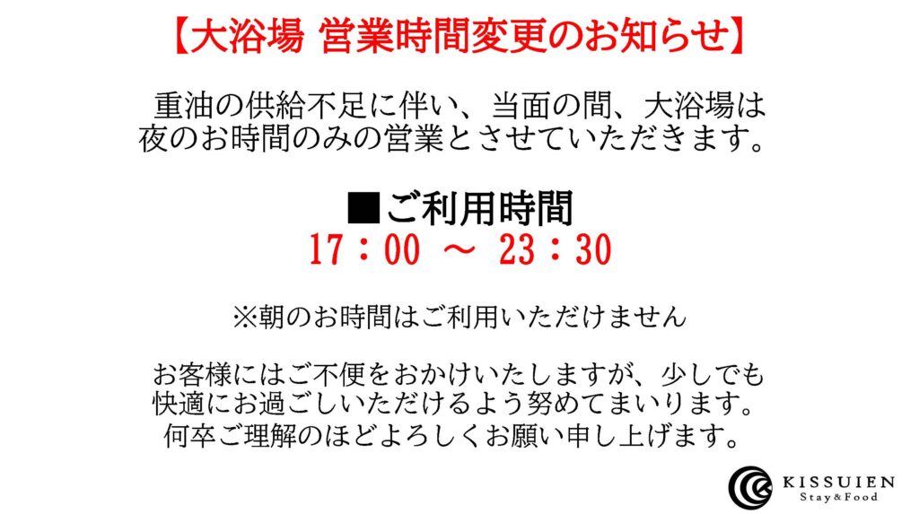 大浴場営業時間変更のお知らせ